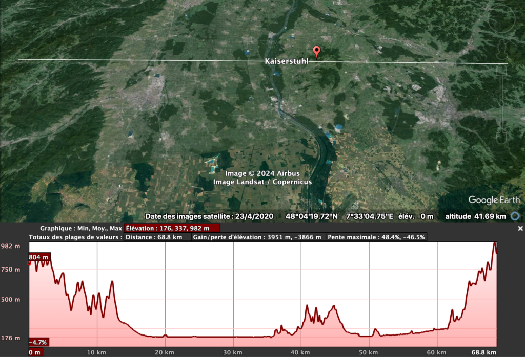 1/ Volcan Kaisersthul : Le Kaiserstuhl (littéralement, le « trône de l’empereur ») est un volcan dont l’âge remonte au Miocène, c’est-à-dire qu’il a de 16 à 18 millions d’années. Il est situé presque au milieu du fossé rhénan, en Allemagne, entre Colmar et Freiburg. Il nous offre l’observation de coulées de lave avec pyroxène et olivines.